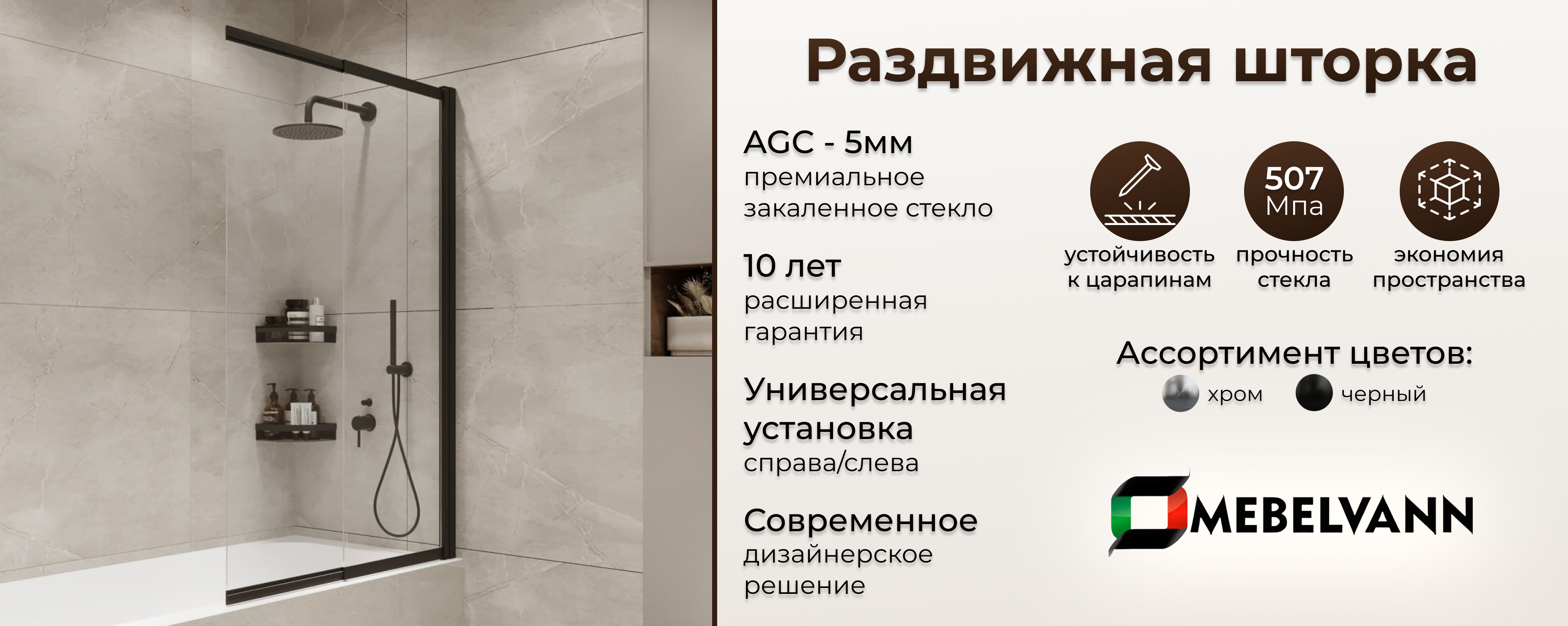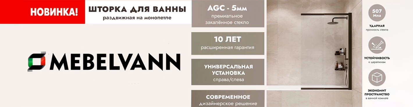 На складе Код товара: BEN_801_BL_C Шторка на ванну Slide Open 1500х900 прозрачное стекло/профиль черный (раздвижная) 1500х900975.00 BYN