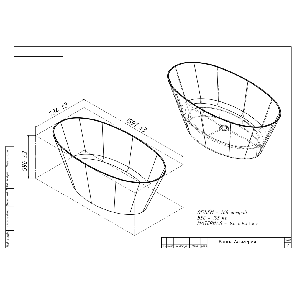 Карта покупок| Длина,мм1597 | Комплектацияванна, сифон | Объем260 |