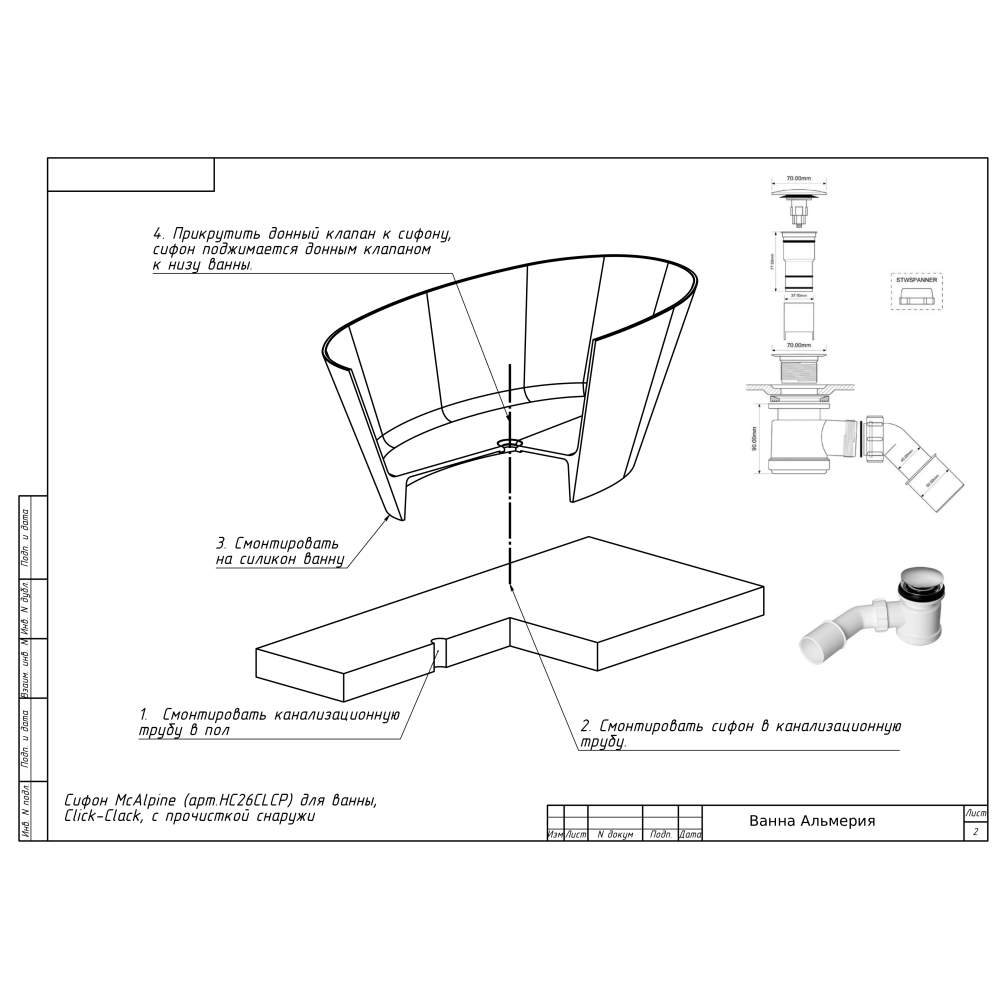 | Комплектация | ванна, сифон |
