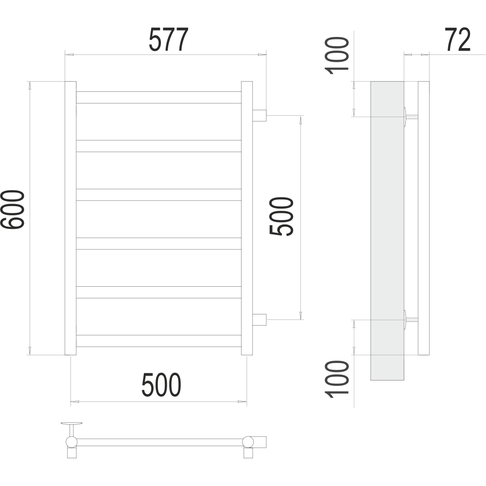 | ФормаЛесенка | Тип подключения, диаметр трубы (дюймы)Боковое | Высота, мм600 |
