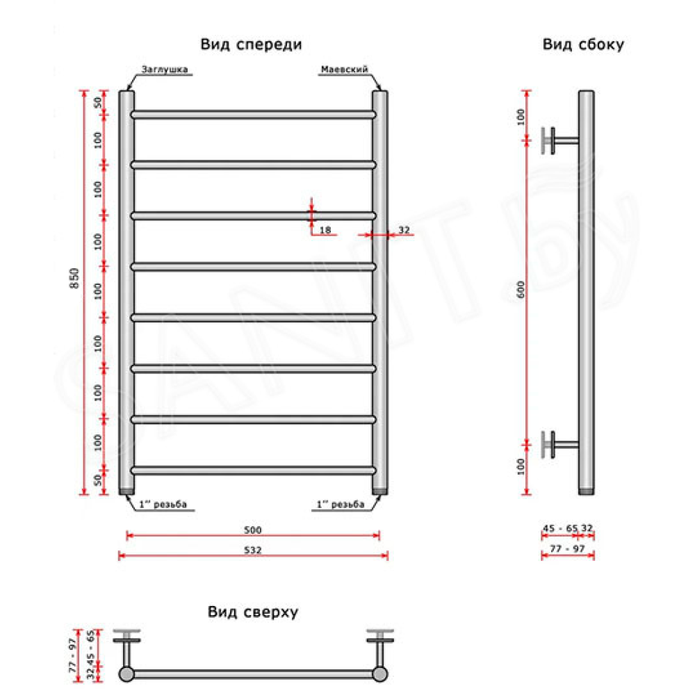 | ФормаЛесенка | Тип подключения, диаметр трубы (дюймы)Нижнее | Высота, мм850 |