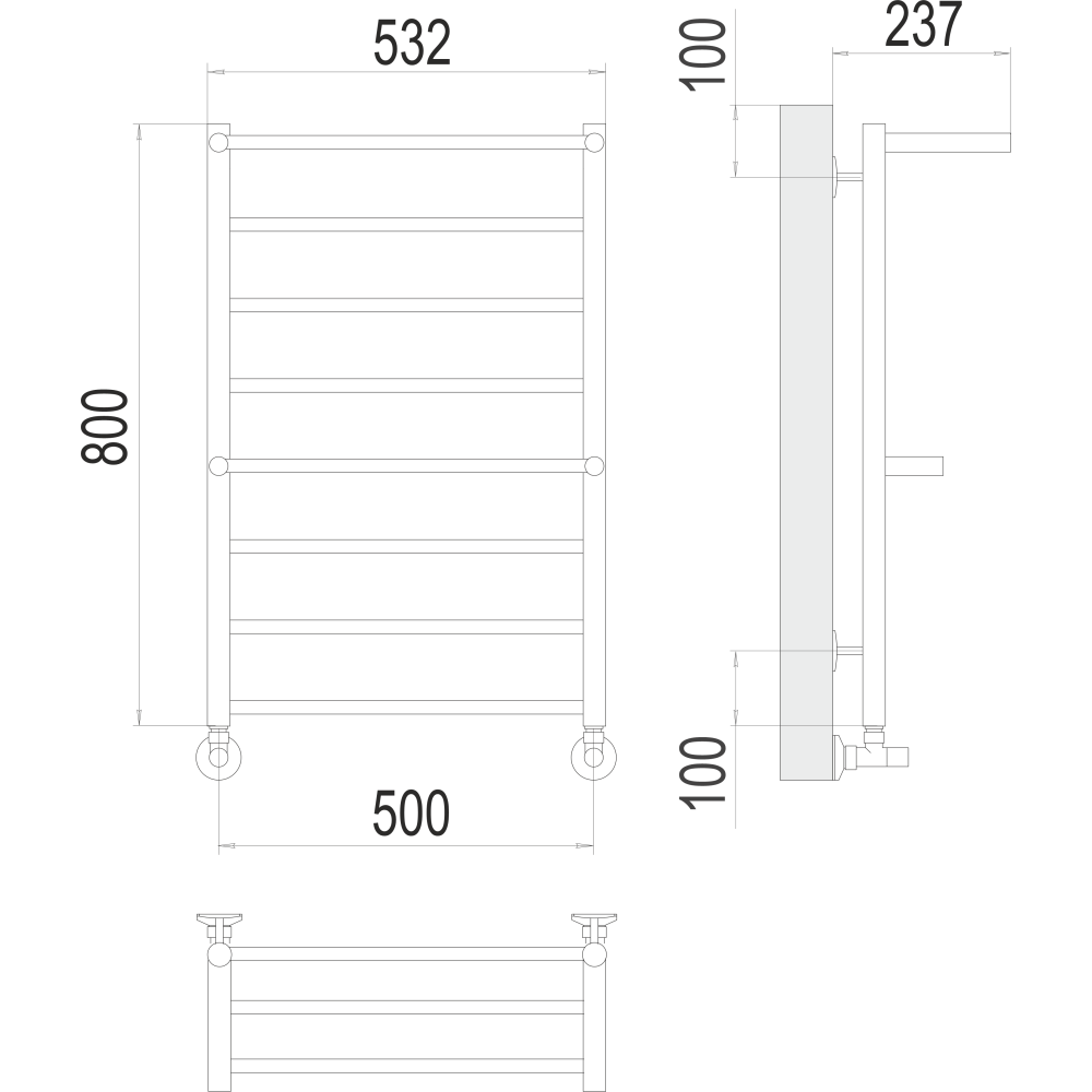 | ФормаЛесенка | Тип подключения, диаметр трубы (дюймы)Нижнее | Высота, мм800 |