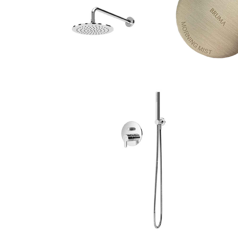 Душевая система скрытого монтажа Bruma Elo Leaf создана для тех, кто считает, что сантехника не должна привлекать к себе внимание. Верхняя лейка серии Leaf (Лист) — плоская, почти невесомая — словно парит под потолком, а скрытый блок управления полностью спрятан в стене.