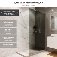 Душевая перегородка типа walk-in свободный вход 1000х2000 матовое стекло / профиль черный