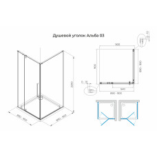 Душевой уголок с двумя раздвижными дверьми BEN_901_SL_C_1950x900x900 хромированый профиль/прозрачное стекло
