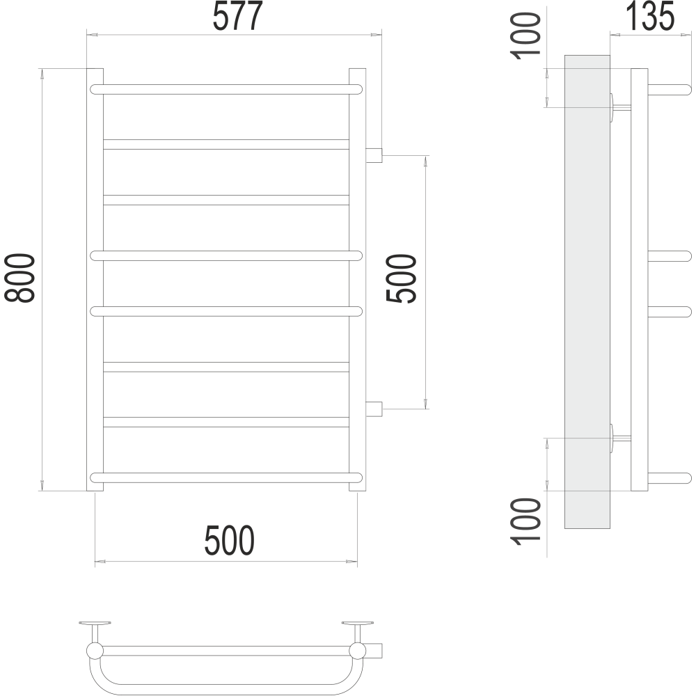 | ФормаЛесенка | Тип подключения, диаметр трубы (дюймы)Боковое | Высота, мм800 |