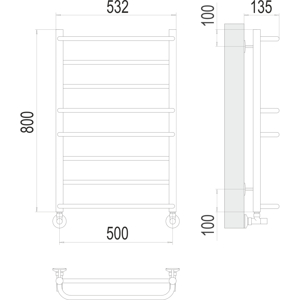 | ФормаЛесенка | Тип подключения, диаметр трубы (дюймы)Нижнее | Высота, мм800 |