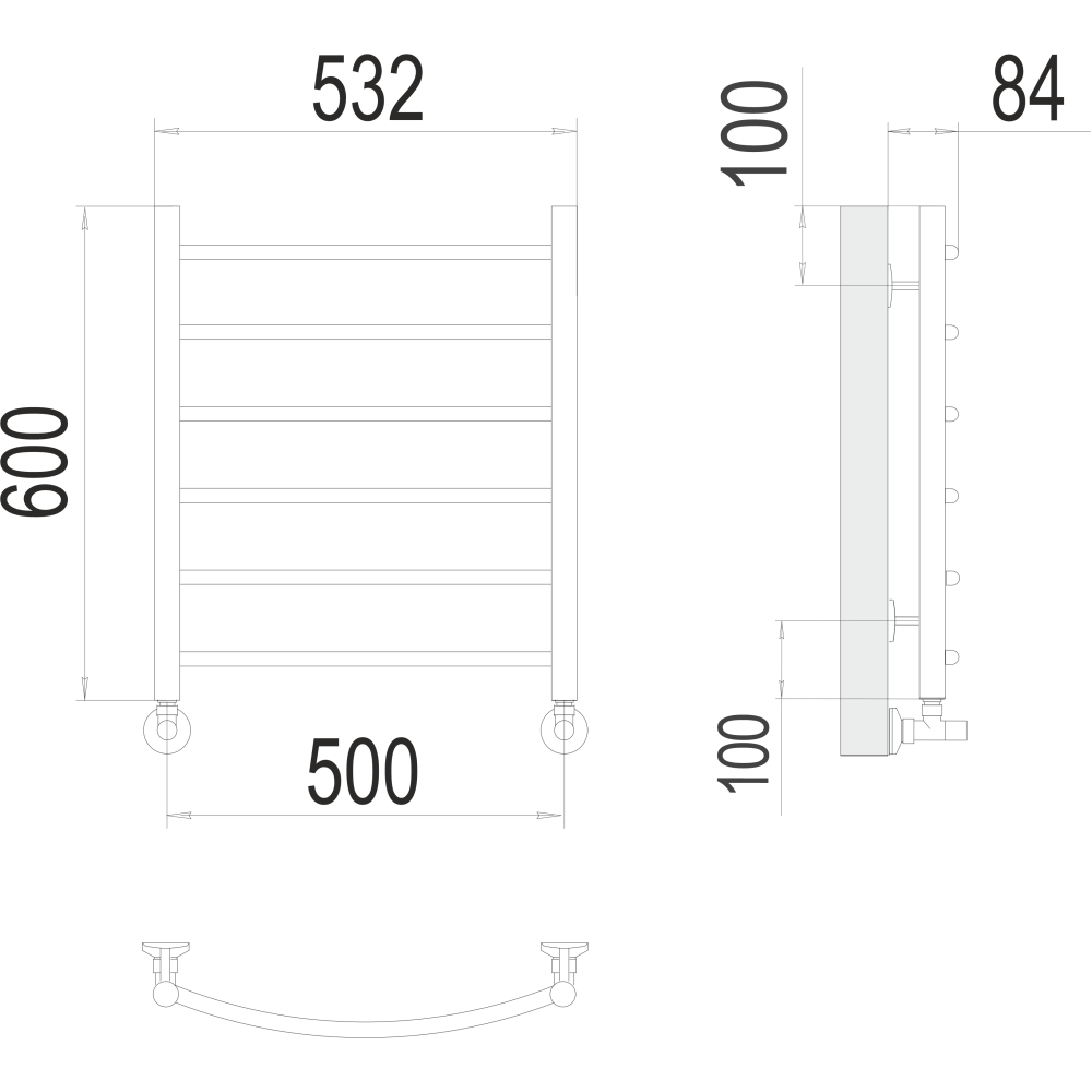 | ФормаЛесенка | Тип подключения, диаметр трубы (дюймы)Нижнее | Высота, мм600 |