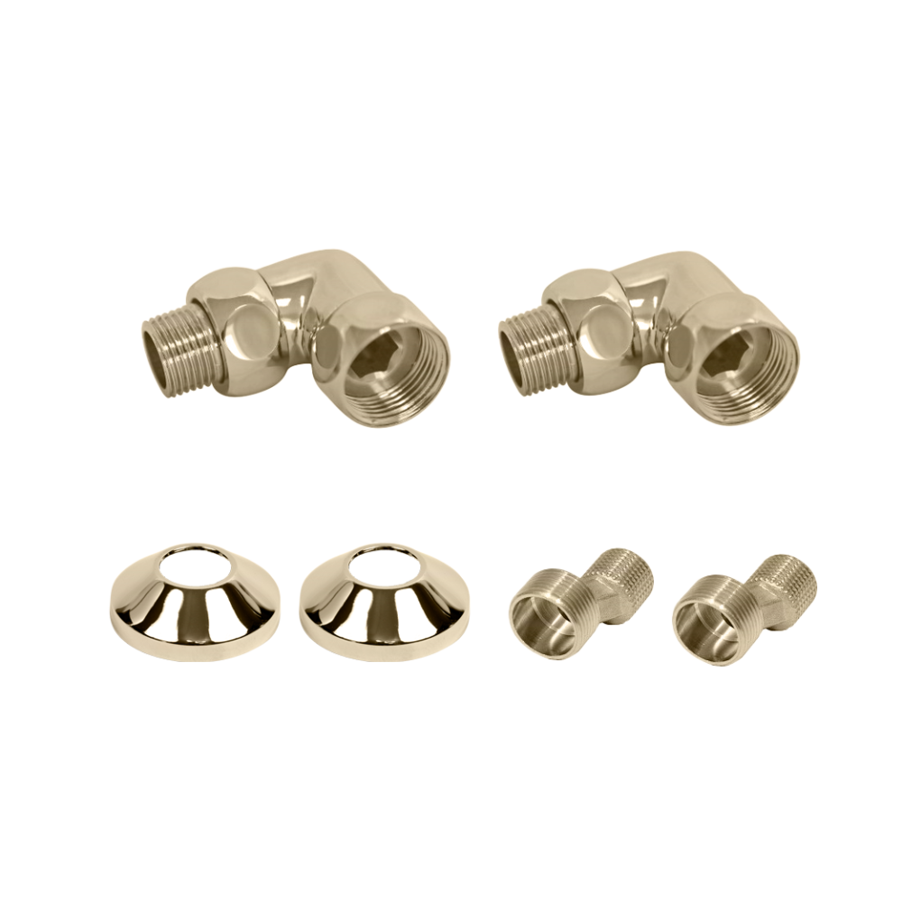 Код товара: 4670078538956Золотоглянецпокрас Комплекты для нижнего подключения водяных ПС 3/4" х 1/2" круглый вентиль Золото Глянец Покраска