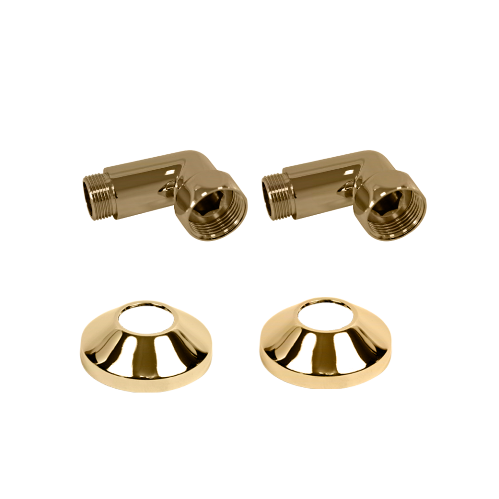- Комплекты для нижнего подключения водяных ПС 3/4" х 1/2" уголок со сгоном Матовое Золото PVD