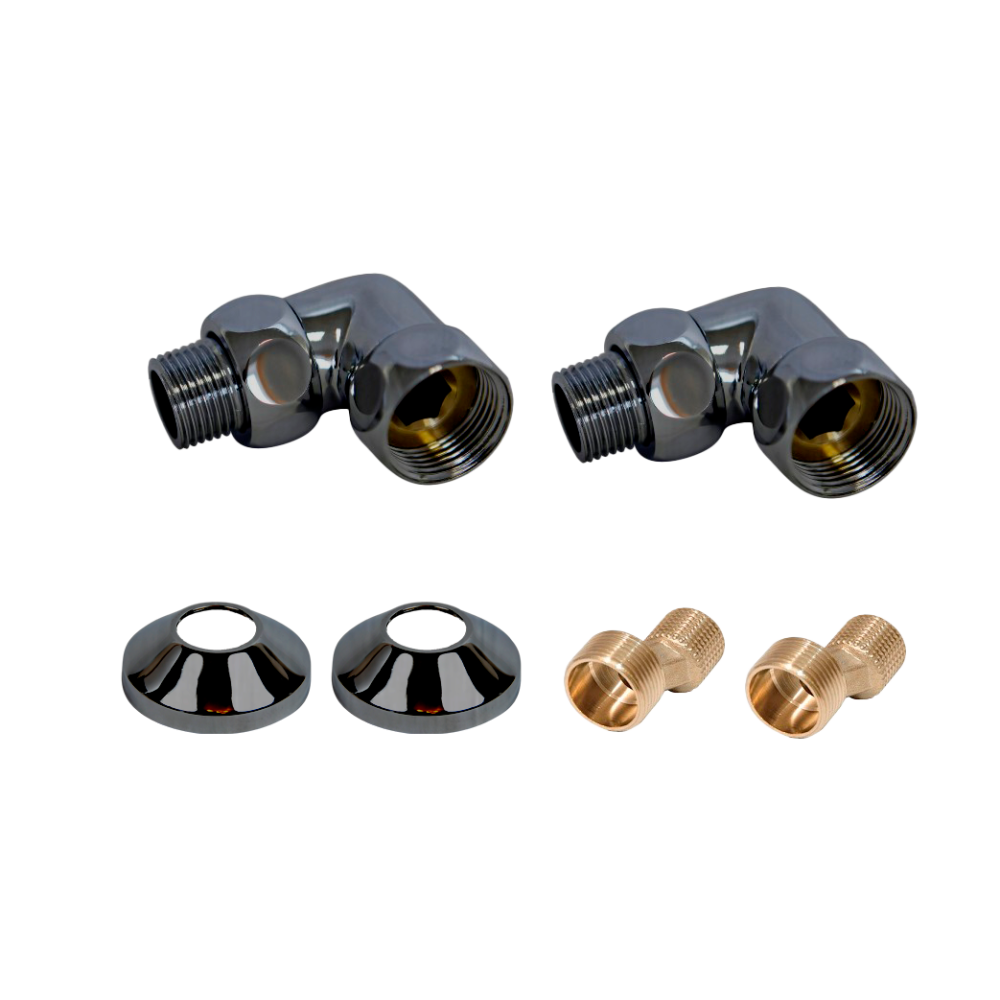Комплекты для нижнего подключения водяных ПС 3/4" х 1/2" уголок со сгоном Оружейная Сталь Покраска