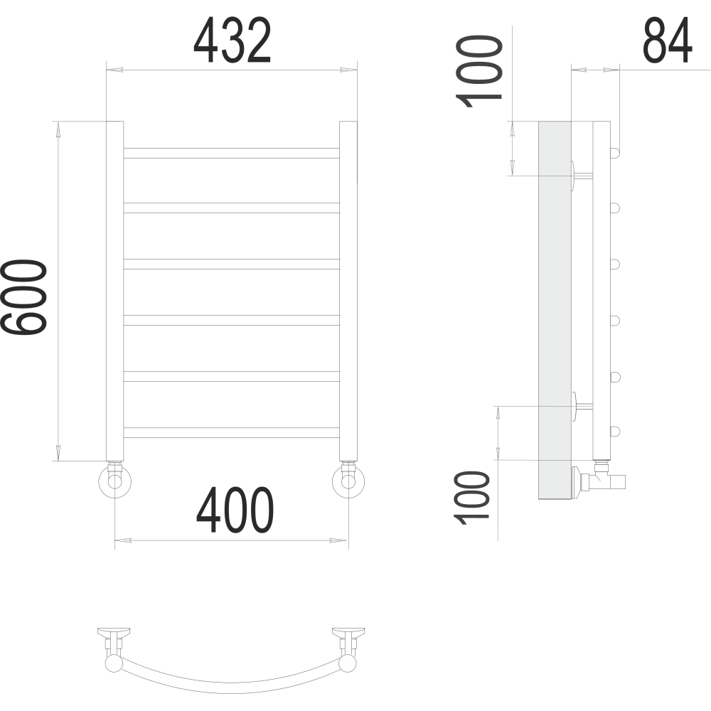 Количество полотенцесушителей в перекладине: 6