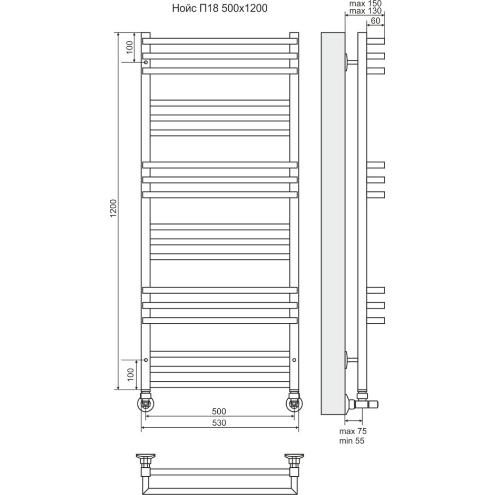Технические характеристики Полотенцесушитель “Terminus” Нойс П18 500х1200 Хром